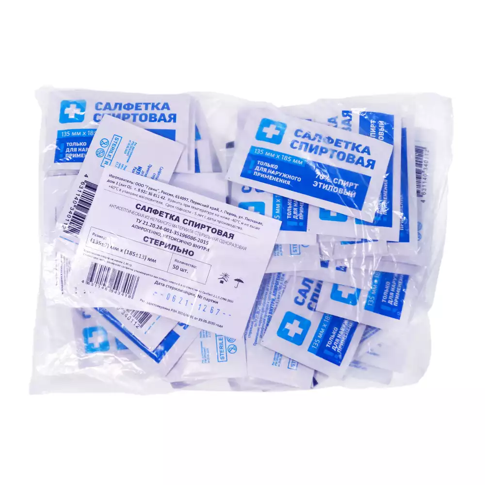 Салфетка спиртовая антисептическая для инъекций, размер 135*185мм, 70% этиловый спирт, 50 шт