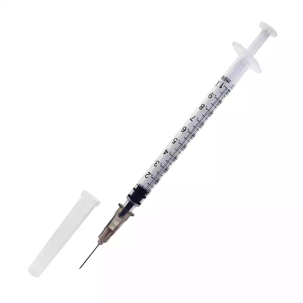 Шприц инъекционный 1 мл (инсулин/туберкулин) однократного применения 3-х компонентный с атравматической тонкостенной иглой 0.4x13мм, надетой на шприц.