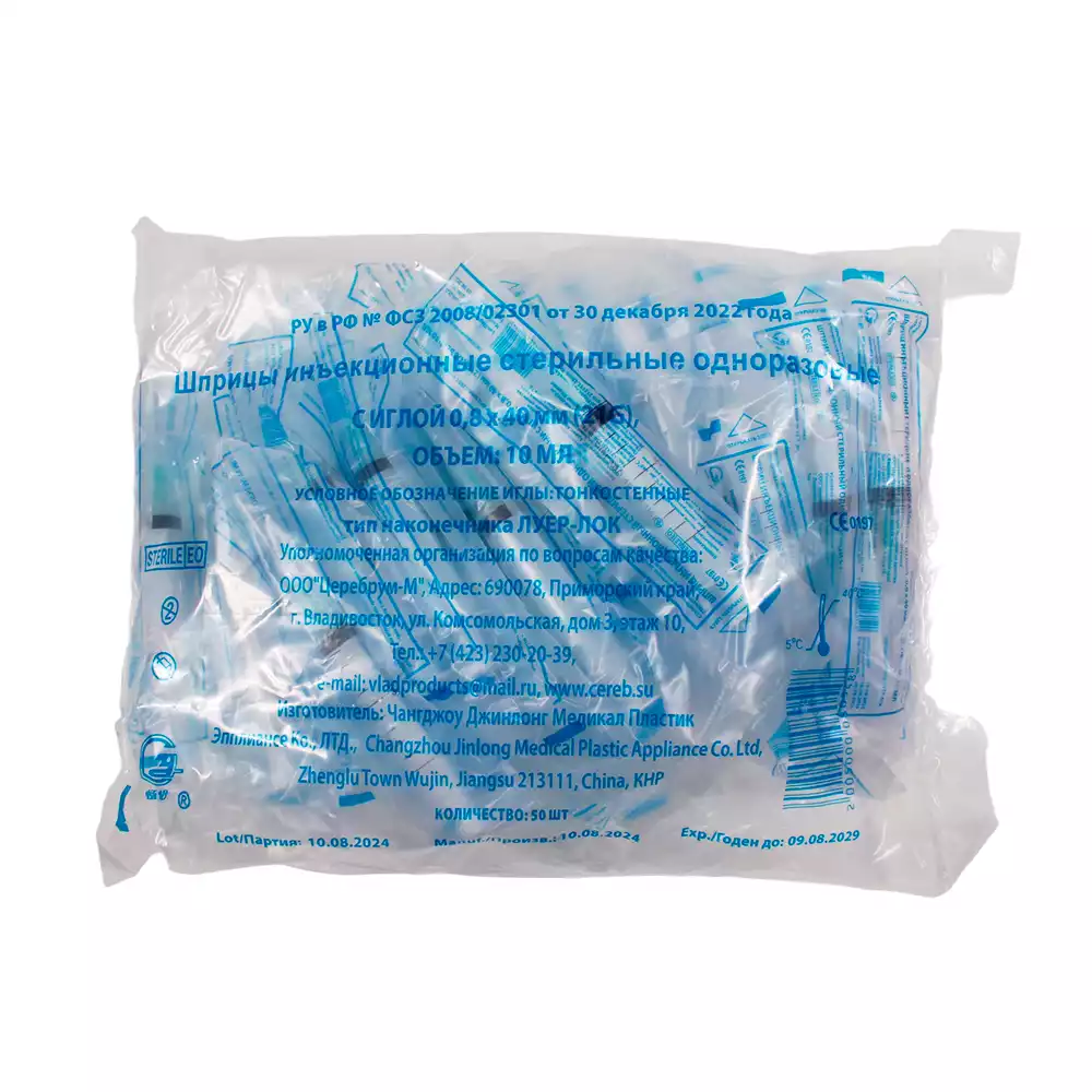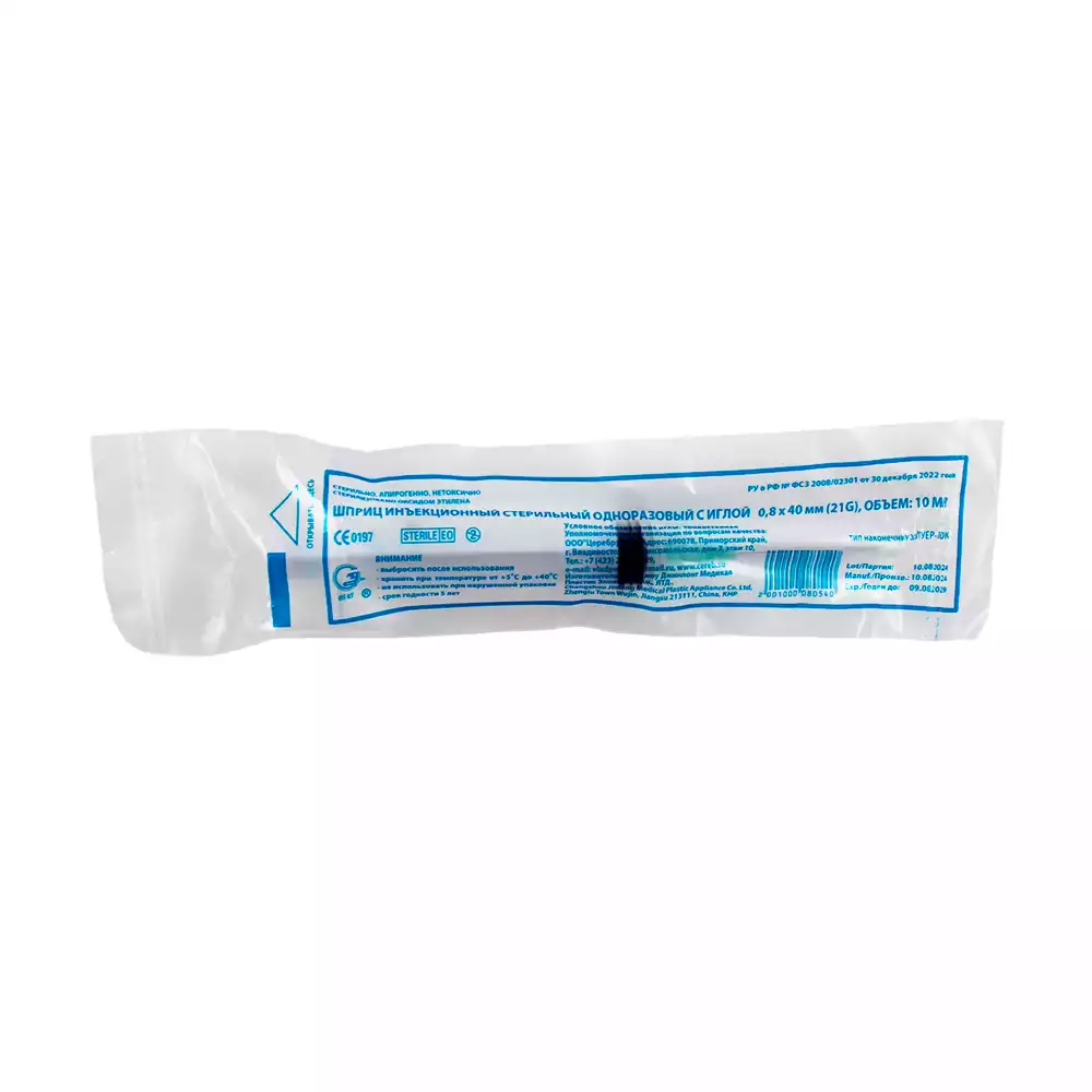 Шприц 10,0мл, 3-х компонентный, игла 21Gх1 1/2 (0,8*40мм), соединение Луер Лок, стерильный