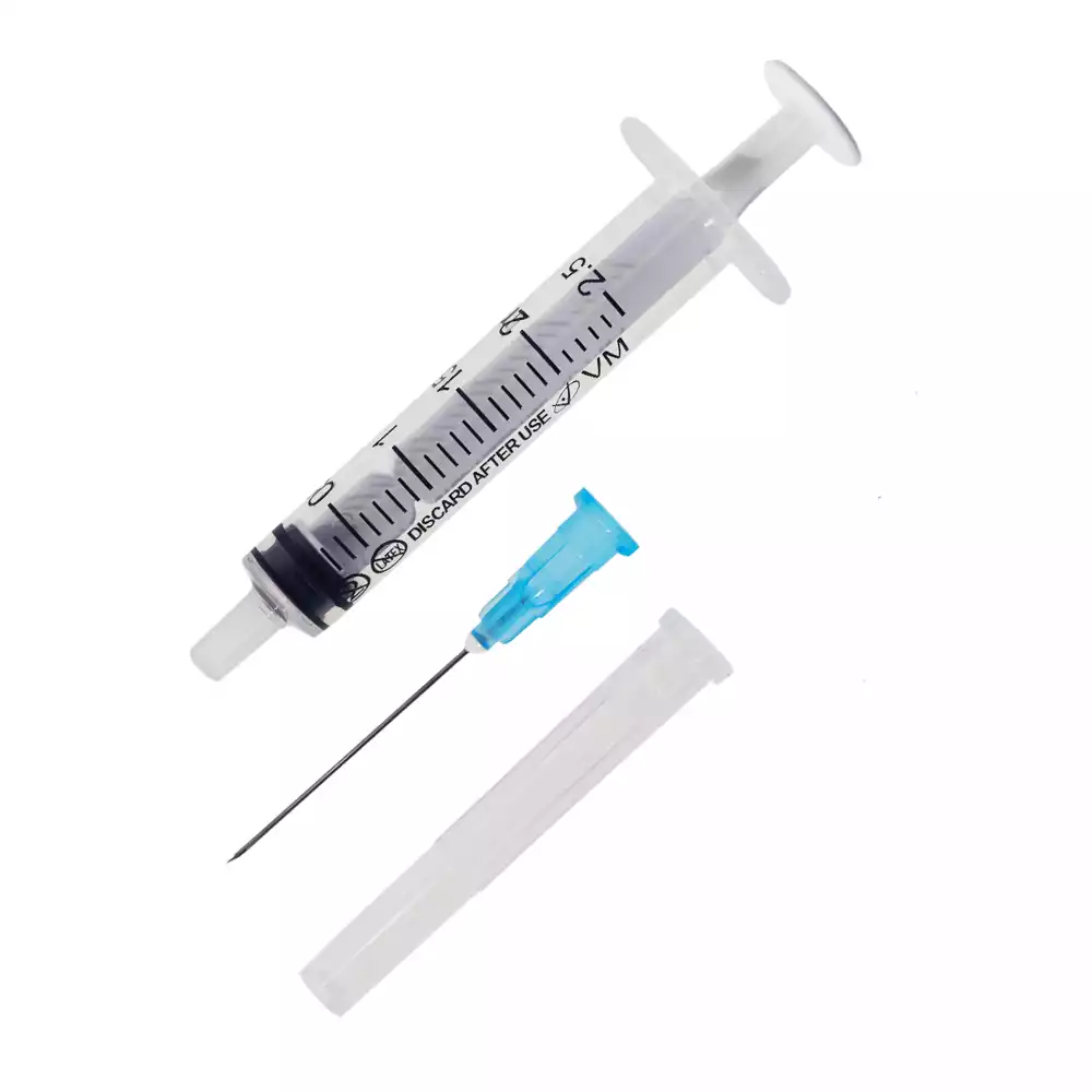 Шприц 2,0мл, 3-х компонентный, игла 23G (0,6*30мм) рядом, доп. шкала 2,5мл, стерильный