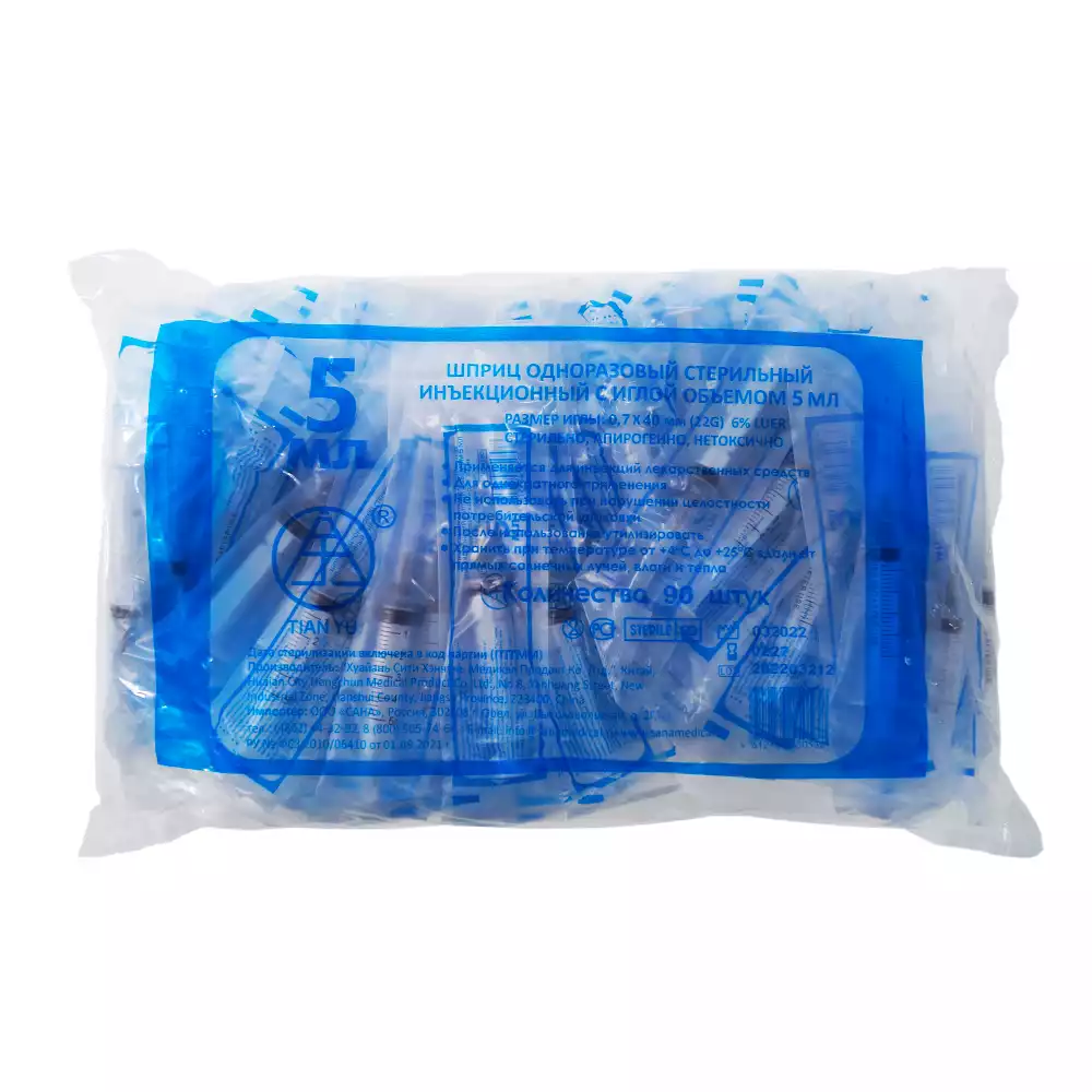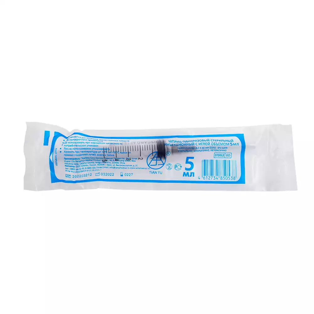 Шприц 5,0мл, 3-х компонентный, игла 22G*1 1/2 (0,70*40мм), стерильный