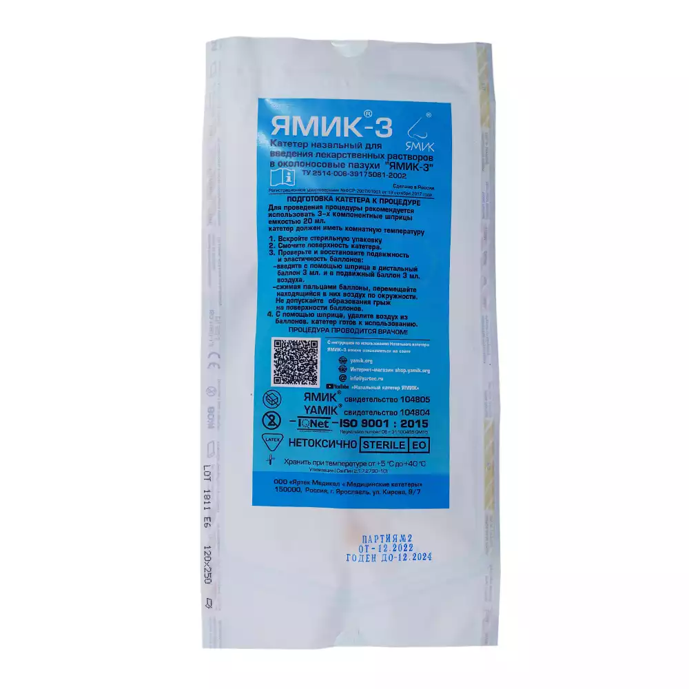 Назальный катетер ЯМИК-3 используется для введения лекарственных растворов в околоносовые пазухи.