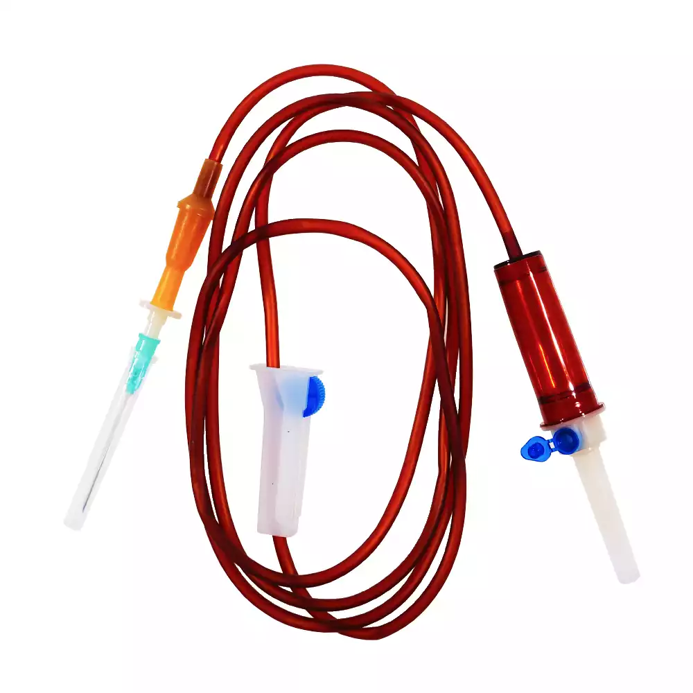 Одноразовая светозащитная инфузионная система переливания крови оборудована пластиковым шипом с интегрированным воздушным клапаном, препятствующим образованию в системе отрицательного давления и фильтром, обеспечивающим защиту от контаминации инфузионного раствора.