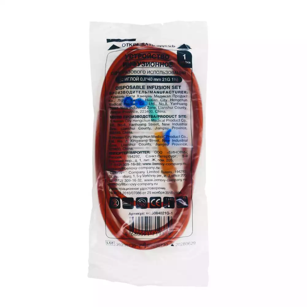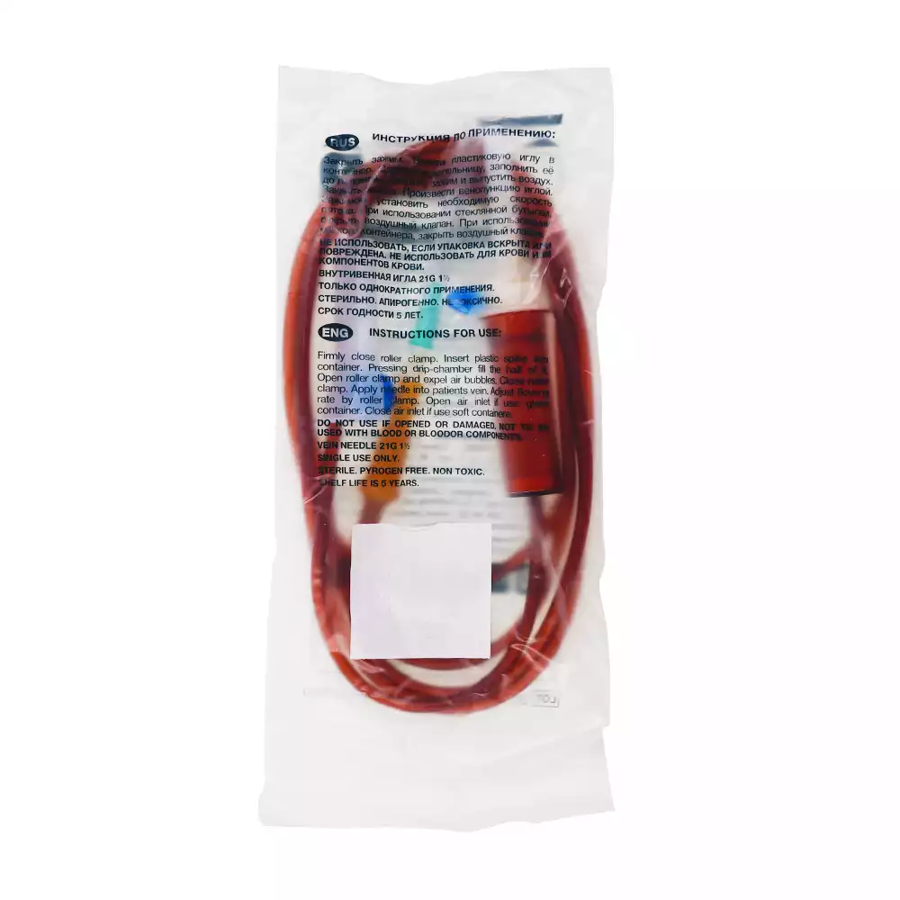 Система инфузионная для переливания растворов 21G игла 0,8*40, пластиковый шип, длина 150см, светонепроницаемая, одноразовая, стерильная