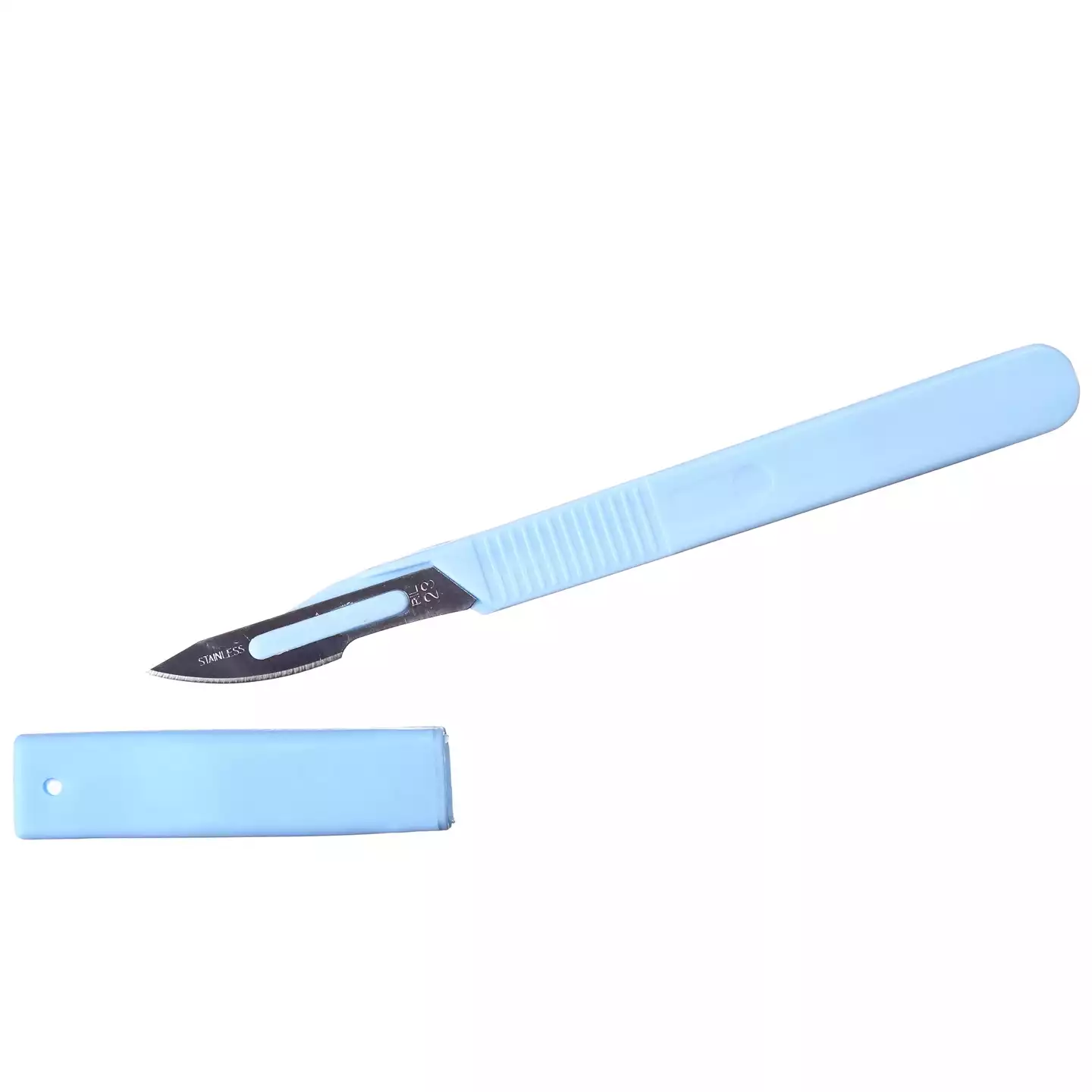 Скальпель предназначен для разрезания тканей при хирургических операциях и анатомических вскрытиях. Скальпель состоит из ручки, защитного колпачка и лезвия. С помощью замковой части на ручке лезвие надежно закреплено. Ручка изготовлена из нетоксичного полистирола, лезвие из качественной нержавеющей стали.