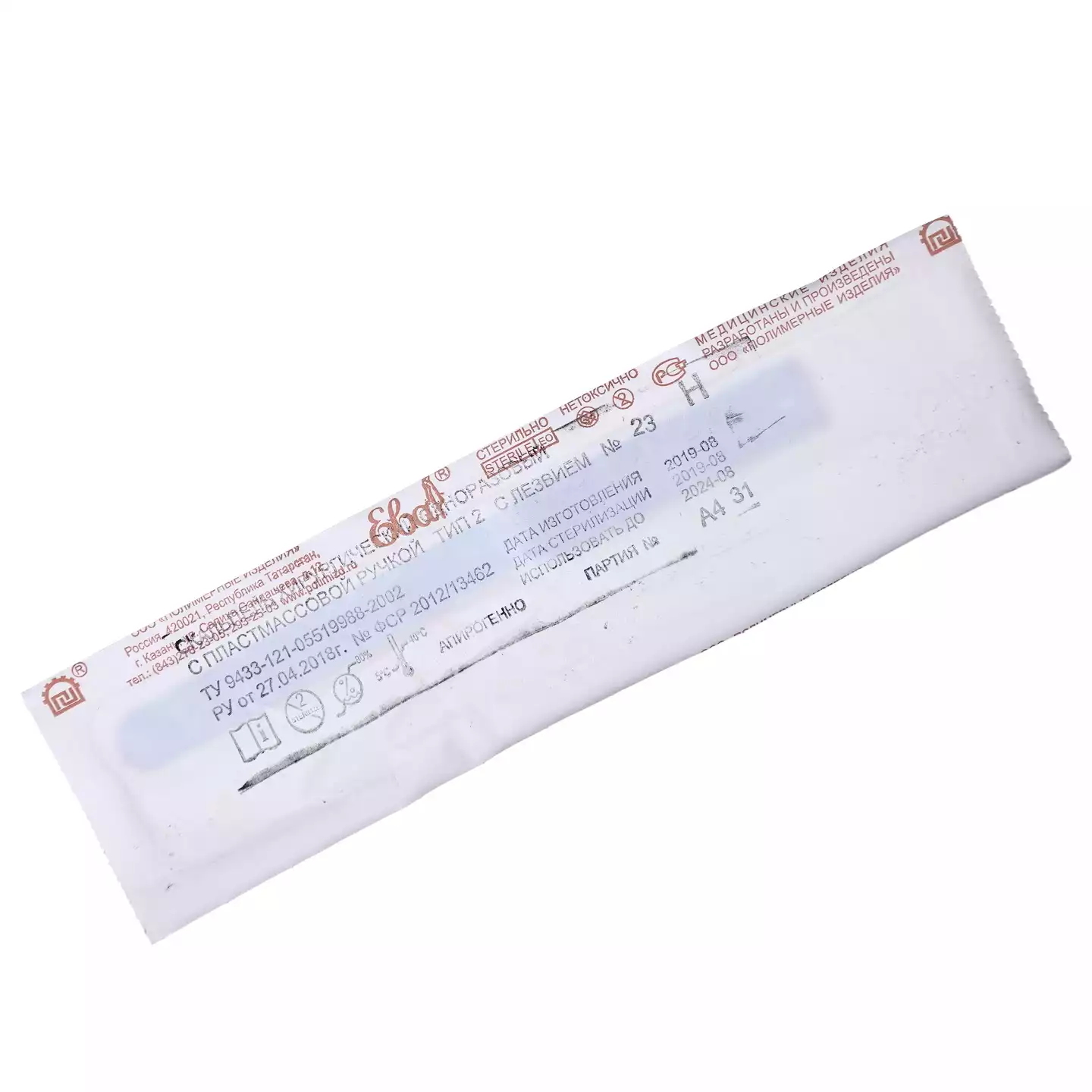 Скальпель с пластмассовой ручкой тип 2, размер №23, нержавеющая сталь, одноразовый, стерильный