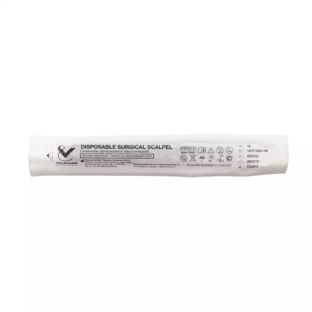 Скальпель VOLKMANN №10 с пластмассовой ручкой, остроконечный, нержавеющая сталь, одноразовый, стерильный