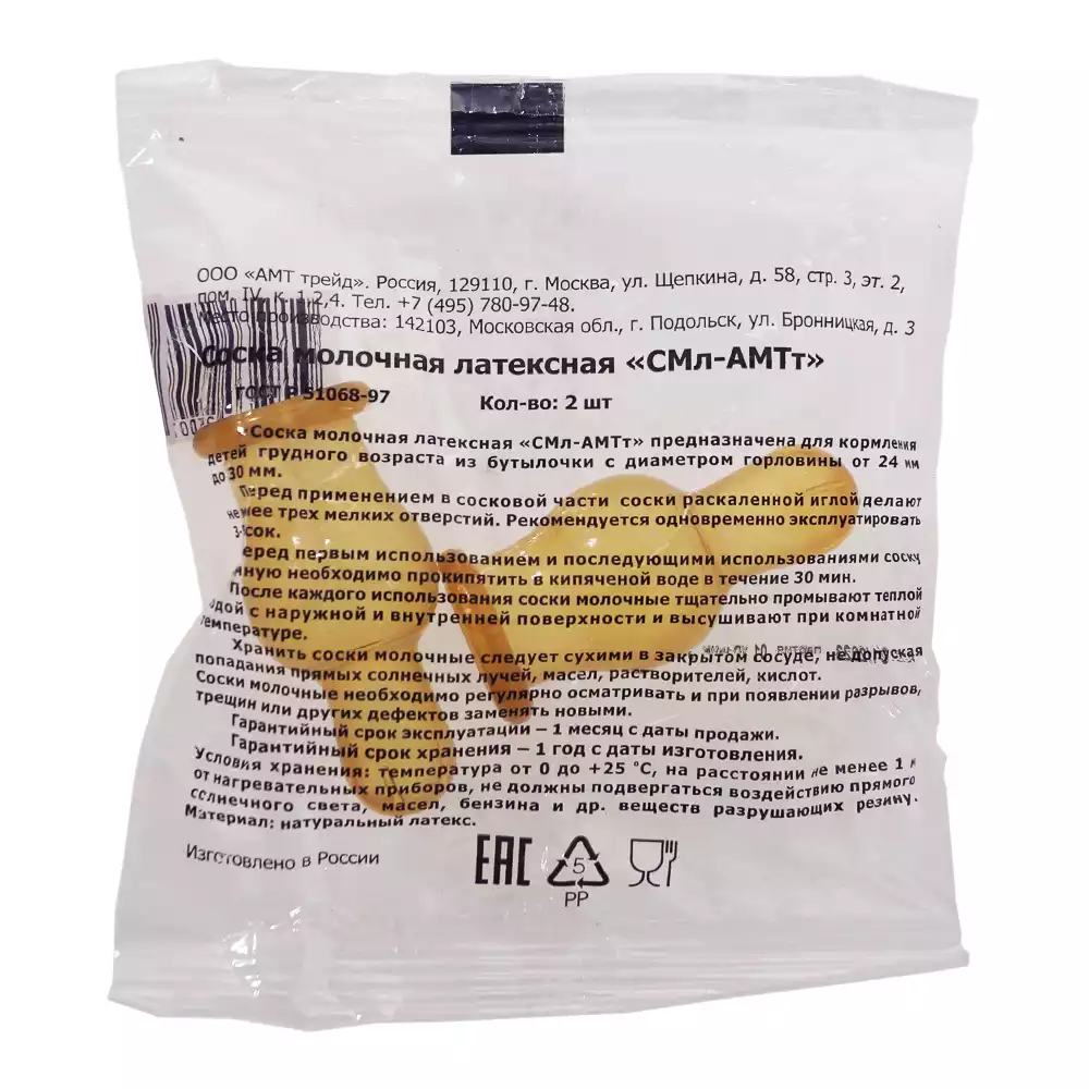 Соска молочная латексная «СМл-АМТт», упаковка 2шт