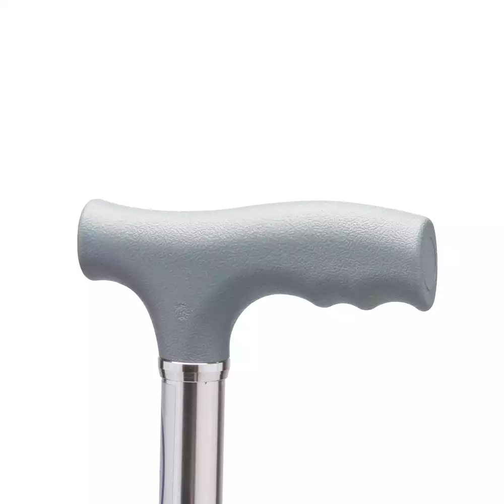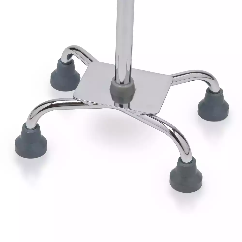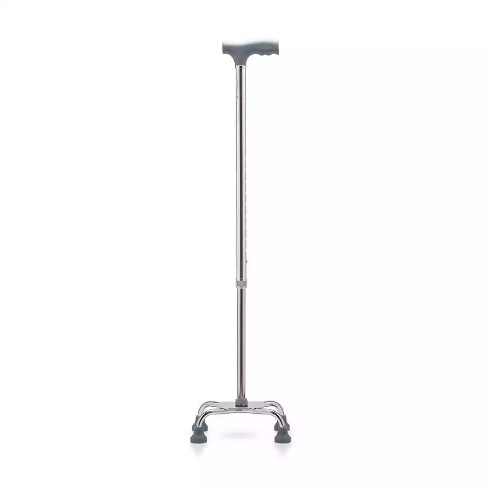 Телескопическая, хромированная, стальная, устойчива к коррозии. Имеет 10 уровней регулировки высоты. Высота трости регулируется надежным кнопочным фиксатором, через 2,5 см. Оснащена квадратной опорой с 4-мя упорами. Упорные насадки резиновые, прочные, не скользящие, сменные. Т-образная рукоятка выполнена из прочного не скользящего пластика. Рукоятка обеспечивает прочность ее захвата рукой и отсутствие скольжения при захвате. Конструкция обеспечивает комфорт и устойчивость.