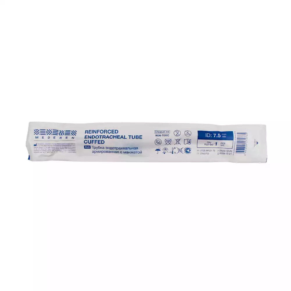 Трубка эндотрахеальная №7,5 с манжетой объемом 9мл, диаметр 7,5/10,2мм, длина 320мм, армированная, стерильная
