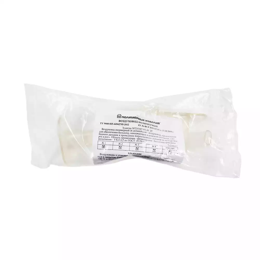 Предназначен для проведения искусственного дыхания по методу "изо рта в рот" и для облегчения дыхания больному в шоковом состоянии. Представлен в размерах: №1 - 32 +/- 3,5 мм №2 - 45 +/- 3,5 мм. №3 - 67 +/- 4,6 мм. №4 - 85 +/- 4,6 мм. Выпускается как в стерильном, так и нестерильном исполнении.