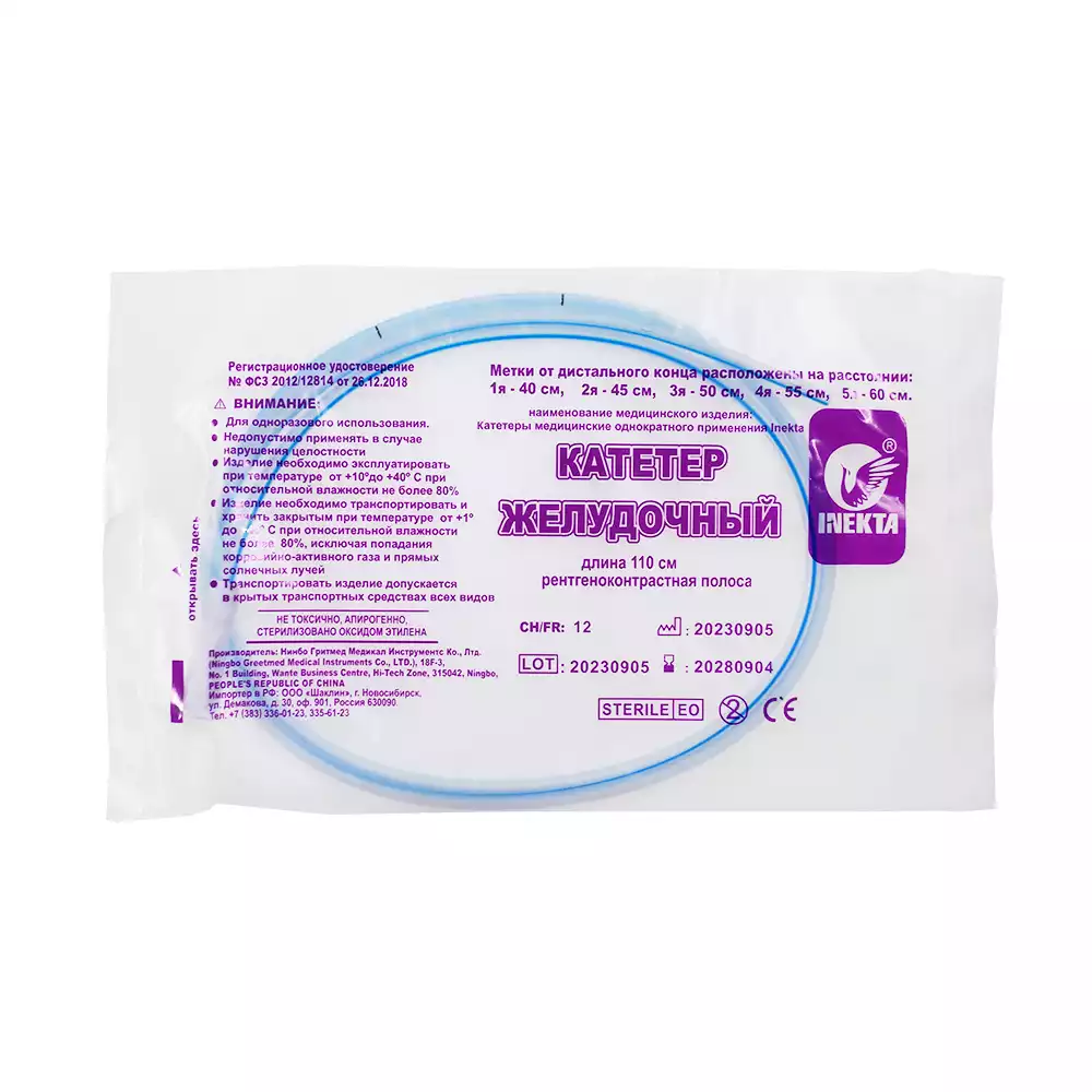Размер: CH-12, длина 110 см, диаметр 2,8/4,0мм, с РКП, цвет белый, стерильный